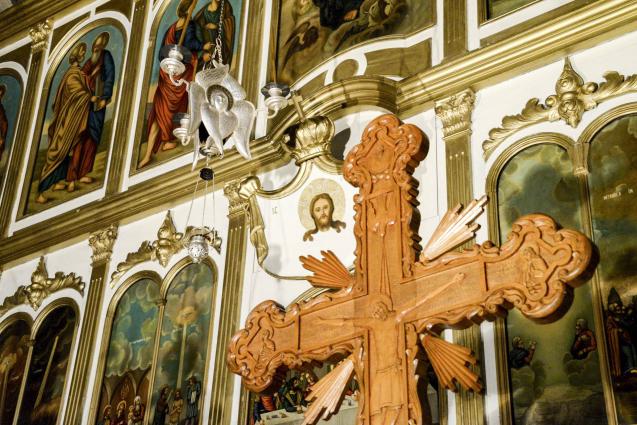 În interior, biserica este împărțită în cele trei încăperi tradiționale: pronaos, naos și altar. Ușa de intrare în biserică se află pe latura sudică a pronaosului și este decorată cu chenare de muluri în arc frânt. Pronaosul este acoperit cu două calote sferice, despărțite printr-un arc dublou. Între pronaos și naos se află un perete despărțitor; portalul de intrare are un chenar dreptunghiular cu baghete încrucișate. Naosul are o cupolă sprijinită pe patru arce piezișe. Altarul nu are diaconicon și proscomidiar, ci două nișe mici săpate în perete.